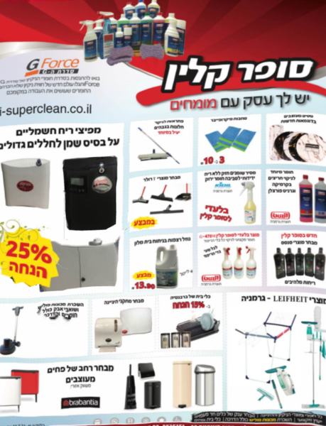 סופר קלין הינה חברה העוסקת בשיווק מוצרי ניקיון והיגיינה, כלים חד פעמיים לתחום המוסדי.